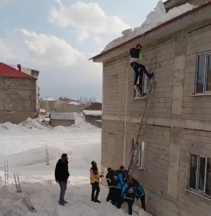 Yüksekova'da nefes kesen kurtarma: Çatıda asılı kalan vatandaş son anda kurtuldu