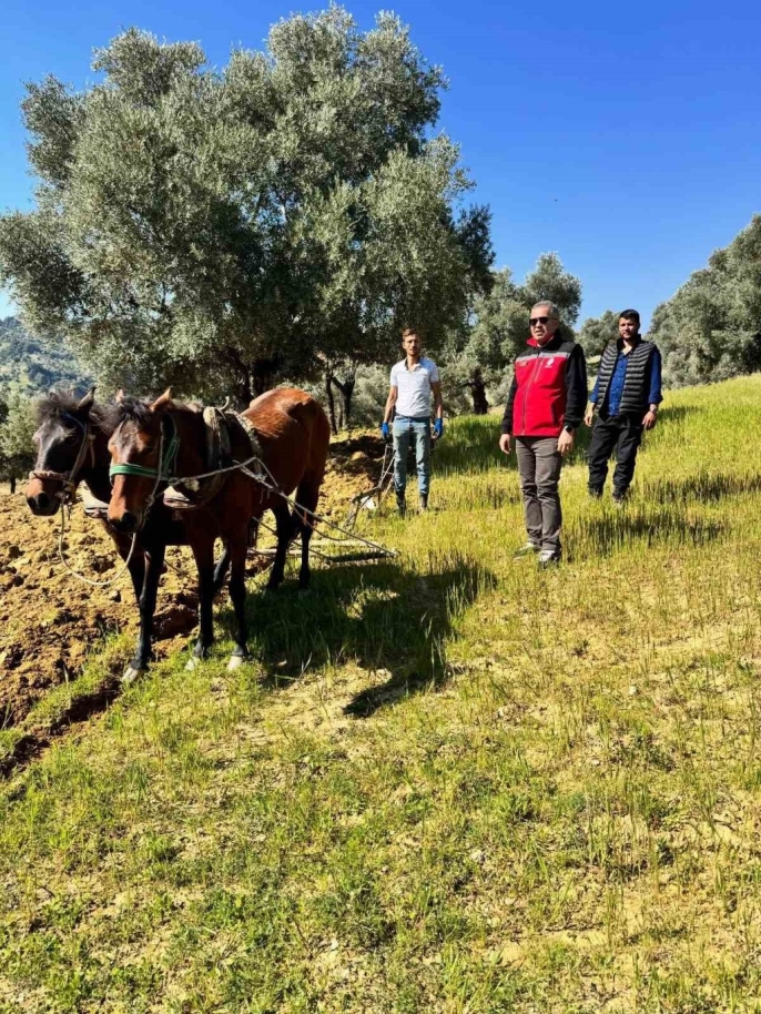 Modern tarım teknolojilerinin yaygınlaşmasıyla birlikte, birçok üretici hala arazinin koşullarına uygun geleneksel yöntemlerle üretim yapmaya devam etmekte. Efeler İlçe Tarım ve Orman Müdürlüğü ekipleri, Horozköy Mahallesi’nde gerçekleştirdikleri ziyaret sırasında Hidayet Doğan’ın zeytinlikte atlarla tarım yaptığını gözlemledi.