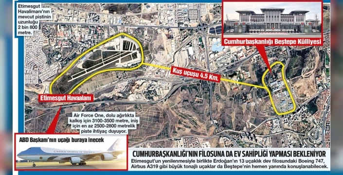 Trump ve diğer devlet başkanlarının uçakları, bu zirve için Etimesgut Havalimanı'na inecek. Ancak mevcut pistin uzunluğu 2 bin 800 metre. Trump’ın uçağının inişi için daha uzun bir piste ihtiyaç duyuluyor. Bu nedenle, Etimesgut Askerî Havaalanı dönüşüm sürecine girdi ve işletmesi Devlet Hava Meydanları İşletmesi'ne (DHMİ) devredildi.