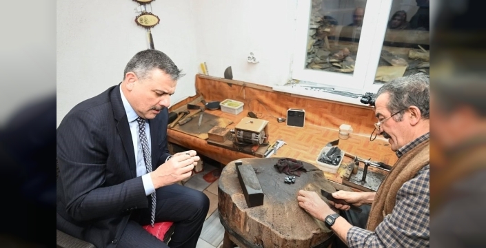 45 yıllık usta Hali Aydın'a Oltu taşı sanatı için vefa ziyareti