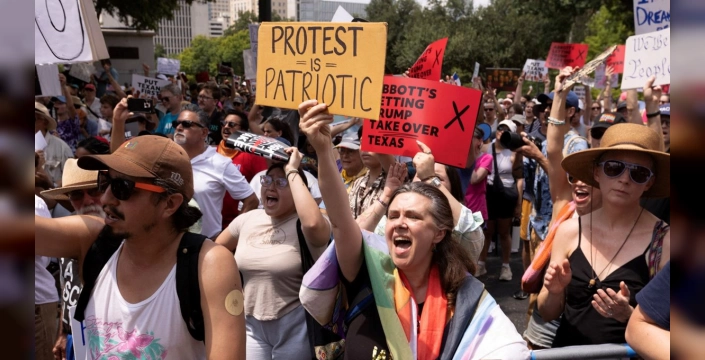 ABD'nin 34 eyaletinde, 'Trump'ın ele geçirmesine dur deyin' çağrısıyla yüzlerce eylem düzenlendi. Bu eylemler, 2026 ara seçimleri öncesinde Cumhuriyetçiler'in Texas'ta seçim bölgelerinin yeniden çizilmesi planına karşı gerçekleştirildi.