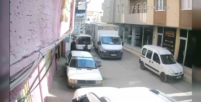 Bursa'nın Yıldırım ilçesinde yaşanan olayda, bir ekmek kamyonetinin sürücüsünün açık unuttuğu arka kapı, yoldan geçen bir genci yere serdi. O anlar güvenlik kameralarına saniye saniye yansıdı.