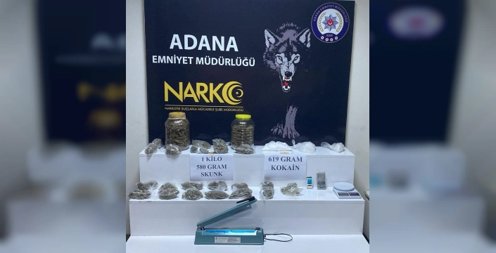 Adana'da büyük uyuşturucu operasyonu: 619 gram kokain ve 1 kilo 580 gram skunk ele geçirildi