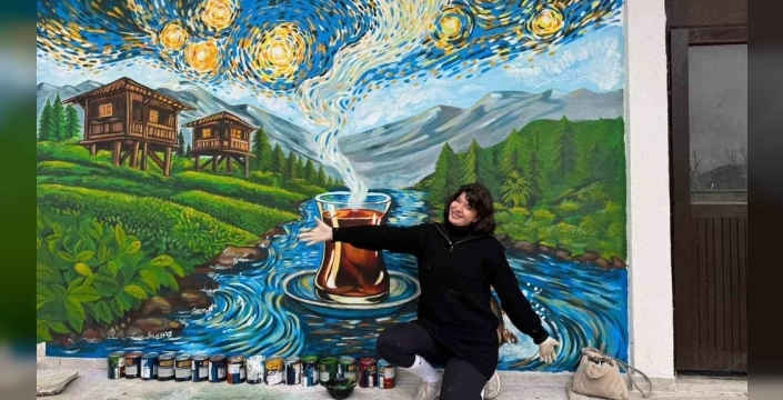 Adana'dan Rize'ye gelen Resim-İş Öğretmeni Gamze Şehitoğlu, Rize'nin simgelerini Van Gogh'un eserleriyle birleştirerek şehirdeki boş duvarları sanatsal dokunuşlarla renklendiriyor.