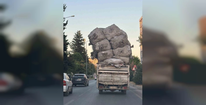 Büyük boyutlu çuvalların kamyonetin kasasından taşarak sarkması ve dengesiz bir şekilde üst üste yığılması, hem diğer sürücüler hem de yayalar için büyük bir risk oluşturdu. Görgü tanıkları, özellikle yoğun saatlerde şehir merkezinde böyle bir aracın dolaşmasının kabul edilemez olduğunu vurguladı.
