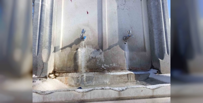 Afyonkarahisar, yeni yılın ilk gününe adeta buz kestiren bir soğukla merhaba dedi. Kentte termometreler sıfırın altında 8 dereceyi gösterirken, bu dondurucu hava çeşmelerin ve süs havuzlarının buz tutmasına neden oldu.
