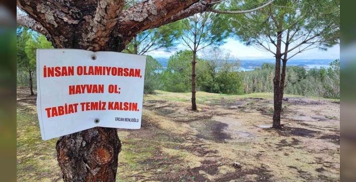Ormanlık alanda yürüyüş yapanlar, uyarı yazısına rağmen bölgeye gelişigüzel çöp atıldığını gördü. Ağaç dallarına ve yol kenarlarına bırakılan plastik atıklar ve evsel çöpler, doğanın acı durumunu gözler önüne serdi. Kısa sürede dikkat çeken uyarı notuna rağmen, çevrede yeni çöplerin oluştuğu görüldü. Doğanın bu uyarıya rağmen çöple dolması, tepkilere yol açtı.