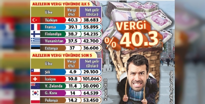 OECD'nin 38 üyeli raporuna göre, iki çocuklu bir ailenin vergi yükü Türkiye'de geçen yıl 1.3 puanlık artışla yüzde 40.3'e ulaştı. Bu oran, OECD ortalaması olan yüzde 26.2'nin çok üzerinde. Rapor, Türkiye'de ailelerin satın alma gücü açısından net gelirlerinin de OECD ortalamasının (53 bin 954 dolar) altında, 38 bin 683 dolar seviyesinde kaldığını ortaya koyuyor.