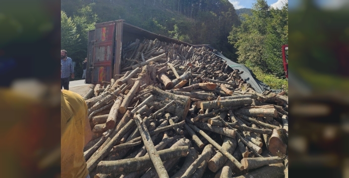 52 ABM 343 plakalı kamyonu kullanan Metin E. (42), virajı dönerken makasının kırılması sonucu kontrolü kaybetti ve 21 ton tomrukla birlikte devrildi. Kazayı gören vatandaşlar, 112 Acil Çağrı Merkezi'ni arayarak yardım istedi.
