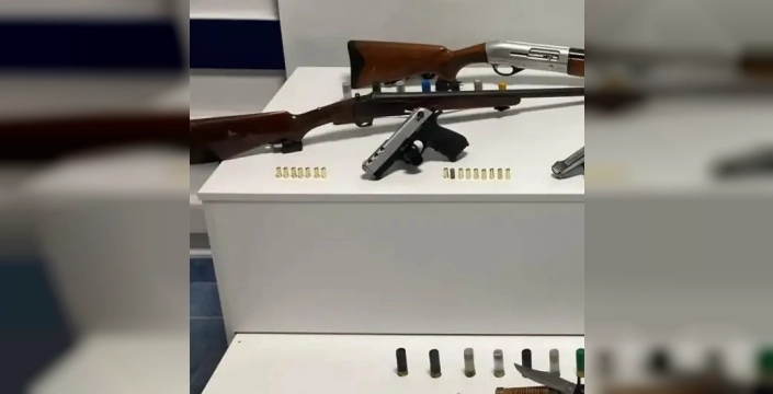 Ş.D. isimli şahsın ikametinde yapılan aramalarda 1 adet ruhsatsız tabanca, 1 adet çalıntı motosiklet, 2 adet kurusıkı tabanca, 2 adet ruhsatsız av tüfeği, 3 adet 6136 SKM kapsamında bıçak, 2 adet amaç dışı bıçak, 33 adet kurusıkı mermisi ve 38 adet av tüfeği fişeği bulundu. Ayrıca D.İ. isimli şahıstan da 1 adet ruhsatsız av tüfeği ele geçirildi.