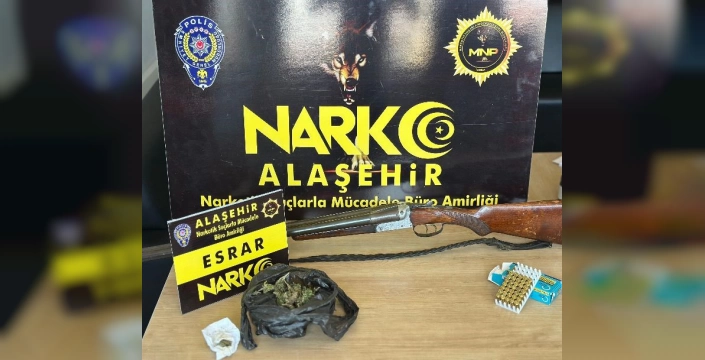 Manisa'nın Alaşehir ilçesinde düzenlenen uyuşturucu operasyonunda, F.E. isimli şüpheli yakalanarak tutuklandı ve şüphelinin üzerinde ve evinde uyuşturucu maddeler ile silah ele geçirildi.