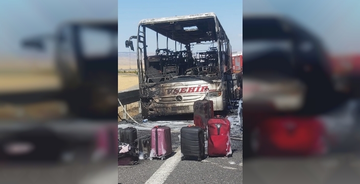 50 AK 511 plakalı, Nevşehir Seyahat'e ait otobüs, henüz belirlenemeyen bir nedenle yanmaya başladı. Şoför, diğer sürücülerin uyarısıyla yangını fark ederek otobüsü emniyet şeridine çekti ve yolcuları güvenli bir şekilde tahliye etti.