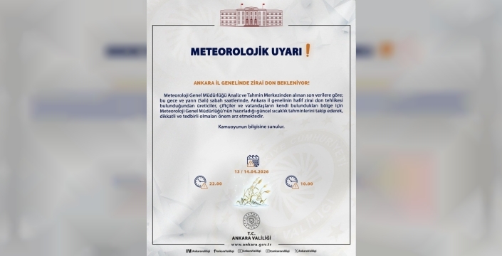 Ankara Valiliği, Meteoroloji verilerine dayanarak il genelinde zirai don beklendiğini duyurdu.