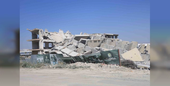 Kahramanmaraş merkezli depremlerin ağır hasar bıraktığı Hatay'da, mahkeme süreçleri tamamlanan binaların yıkımı ve enkaz kaldırma çalışmaları devam ediyor. Antakya ilçesi Saraycık Mahallesi'nde bulunan 12 katlı bir bina, kontrollü bir şekilde iş makineleriyle yıkıldı.