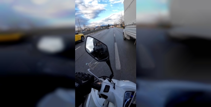 Kask kamerasına yansıyan görüntülerde, motosiklet sürücüsünün yere düştüğü sırada yanındaki kamyonetin hareket etmeye devam ettiği ve arka tekerleklerin altında kalmaktan son anda kurtulduğu net bir şekilde görülüyor. Neyse ki kazada yaralanan motosiklet sürücüsünün hayati tehlikesinin bulunmadığı öğrenildi.