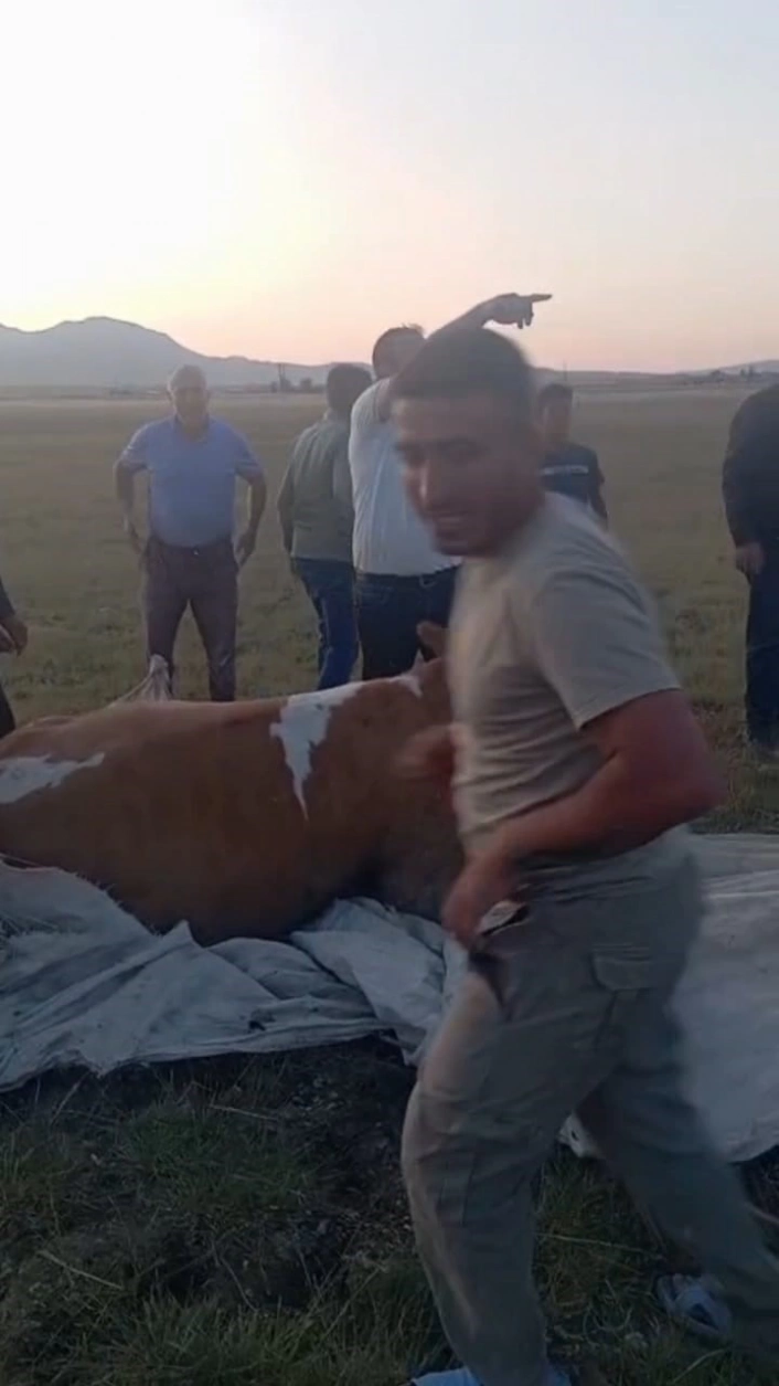 Olay, akşama doğru ilçeye bağlı Göldüzü köyünde meydana geldi. Meraya otlatılmak için çıkarılan inek, Arin Gölünün sığ kesimlerinde bataklık alana girince çamura saplandı. İneğin kendi başına çıkamadığını fark eden sahibi, çevredeki köylülerden yardım istedi.