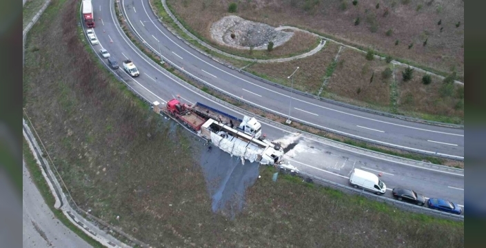 Öğle saatlerinde gerçekleşen kazada, 31 AUR 81 plakalı tır, otoyola bağlanmak üzere girdiği virajda sürücüsünün direksiyon hakimiyetini kaybetmesi sonucu devrildi. Tır şoförü, aracın içinde sıkışarak ağır yaralanırken, olay yerine jandarma, sağlık ve itfaiye ekipleri sevk edildi.