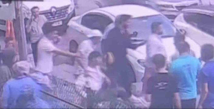 Sinirlerine hakim olamayan otomobil sürücüsü, aracını motosiklet sürücüsünün üzerine sürdü. Park halindeki bir servis aracı ile otomobil arasında sıkışan motosiklet sürücüsü yaralandı. Olay anı, güvenlik kamerası tarafından kaydedildi. Görüntülerde, otomobilin duraksayan motosiklete çarpması ve sürücünün iki araç arasına sıkışarak yaralanması net bir şekilde görülüyor.
