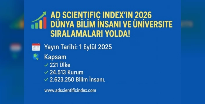 Uluslararası bağımsız sıralama kuruluşu AD Scientific Index, 2026 yılına ait Dünya Bilim İnsanı ve Üniversite Sıralamaları'nı açıkladı. 221 ülkeden 24.545 kurum ve 2 milyon 626 bin 699 bilim insanının değerlendirildiği sıralamada, üniversiteler üretkenlik, atıf etkisi ve bireysel araştırma performansı kriterlerine göre sıralandı.
