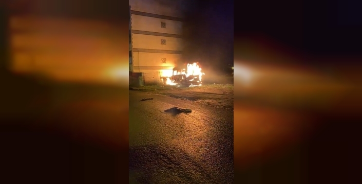 İhbar üzerine olay yerine yangın söndürme ekipleri, polis ve sağlık görevlileri sevk edildi. İtfaiye ekipleri, alev alev yanan araca müdahale ederek yangını söndürdü. Yangın sonrası minibüs kullanılamaz hale geldi ve o anlar cep telefonu kamerası ile saniye saniye kaydedildi.