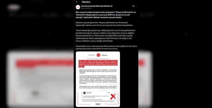 Açıklamada, söz konusu iddialara kaynak gösterilen "Alışveriş Merkezleri ve Yöneticileri Başkanlığı" isimli bir resmi kurumun var olmadığı vurgulandı. DMM, bu tür asılsız bilgilere itibar edilmemesi gerektiğini belirtti.
