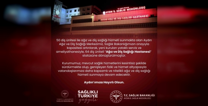 Aydın Ağız ve Diş Sağlığı Merkezi, Sağlık Bakanlığı onayıyla kapasitesi artırılarak Ağız ve Diş Sağlığı Hastanesi statüsüne dönüştürüldü. Yeni yataklı servis ve ameliyathane ile hizmet kalitesi yükseltildi.