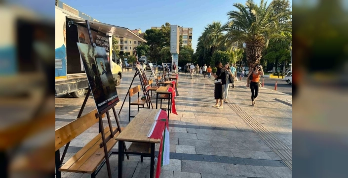 Etkinlikte konuşan AK Parti Aydın İl Gençlik Yönetim Kurulu Üyesi Azra Türkmen, Gazze'de çocukların en temel haklarından mahrum bırakıldığını vurguladı. Türkmen, 'Okul sıraları boş kaldı, defterler açılmadan kapandı, kalemler kırıldı. İsrail'in bombaları çocukların hayallerini çalıyor. Biz gençlik olarak bu zulmü lanetliyor, Filistinli kardeşlerimizin yanında olduğumuzu ilan ediyoruz' şeklinde konuştu. Uluslararası topluma da çağrıda bulunan Türkmen, 'Çocuk katili İsrail karşısında susanlar, insanlık suçuna ortak oluyor. Tarih bu utancı affetmeyecektir' dedi.