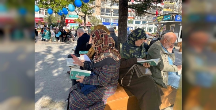Ufka Yolculuk Bilgi ve Kültür Yarışması kapsamında Aydın Atatürk Kent Meydanı'nda düzenlenen etkinlikte, vatandaşlar aynı anda kitap okuyarak bilgi ve kültür yolculuğuna katıldılar.