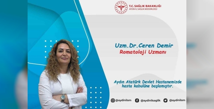 Uz. Dr. Ceren Demir, Aydın Atatürk Devlet Hastanesi'nde romatoloji uzmanı olarak göreve başladı ve zemin kattaki poliklinikte hizmet verecek.