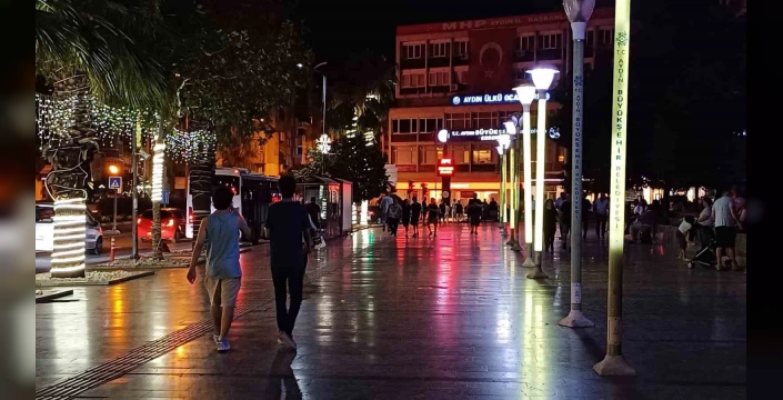 Aydın'ın Efeler ilçesinde akşam saatlerinde hava sıcaklığı 35 dereceyi gösterdi. Bu sıcakta serinlemek isteyen çok sayıda Aydınlı, Kent Meydanı'na akın etti.
