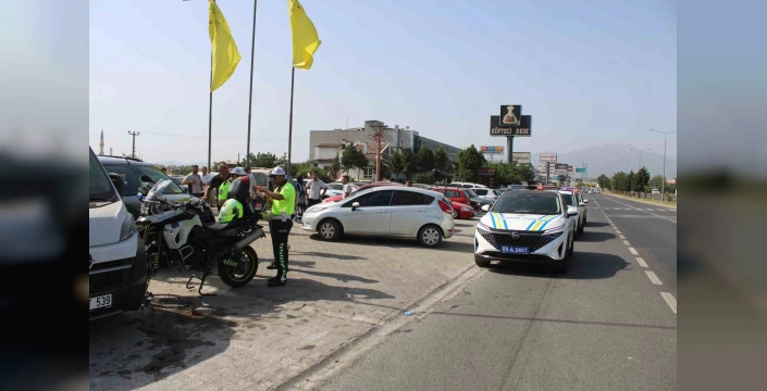 09 A 7656 plakalı motosikleti kullanan motorize trafik polisi H.K. ile 09 AAU 444 plakalı otomobili kullanan S.A. çarpıştı. Çarpışmanın şiddetiyle motosikletten fırlayan H.K., yaralandı. Olay yerine gelen sağlık ekipleri, yaralı polisi Aydın Devlet Hastanesi'ne kaldırdı. Yetkililer, yaralının hayati tehlikesinin bulunmadığını açıkladı.