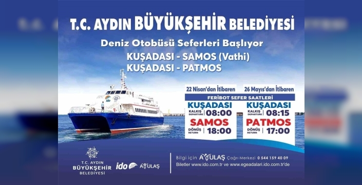 Aydın Büyükşehir Belediye Başkanı Özlem Çerçioğlu, 22 Nisan'da Kuşadası'ndan Samos ve 26 Mayıs'ta Patmos'a deniz otobüsü seferlerinin başlayacağını duyurdu.
