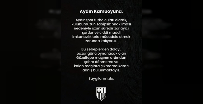 Paylaşımda, futbolcuların Güzeltepe karşılaşması sonrası Aydın'a dönmeme yönünde ortak karar aldığı açıkça belirtildi. Aydınspor Kulübü'nden yapılan resmi açıklamada da, "Aydın Kamuoyuna; Aydınspor futbolcuları olarak, kulübümüzün sahipsiz bırakılması nedeniyle uzun süredir zorlayıcı şartlar ve ciddi maddi imkansızlıklarla mücadele etmek zorunda kalıyoruz. Bu sebepten dolayı, pazar günü oynanacak olan Güzeltepe maçının ardından şehre dönmeme kararı almış bulunmaktayız. Saygılarımızla" ifadelerine yer verildi. Bu karar, kulübün geleceği hakkında ciddi endişeleri beraberinde getiriyor.