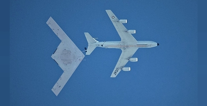 ABD Hava Kuvvetleri'nin en önemli silahlarından biri olarak görülen 6. nesil B-21 Raider hayalet bombardıman uçağı, teknoloji tarihinde önemli bir adım atarak ilk kez havada yakıt ikmali yapılırken görüntülendi.