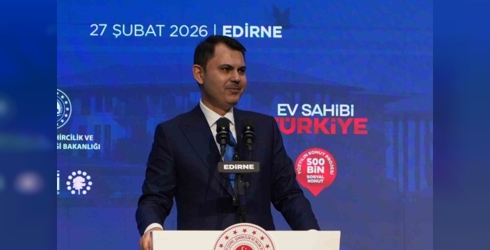 Çevre, Şehircilik ve İklim Değişikliği Bakanı Murat Kurum, Edirne’de düzenlenen ’Ev Sahibi Türkiye Kura Çekim Töreni’nde önemli açıklamalarda bulundu. Bakan Kurum, "11 ilimizde eş zamanlı çalışarak, bir Avrupa ülkesi büyüklüğündeki alanı yeniden inşa ettik. 455 bin yuvamızı, 2 yıl gibi kısa bir sürede tamamlayarak depremzede kardeşlerimize teslim ettik. Söz verdiğimiz gibi konutlarımızı sahiplerine ulaştırdık. Asrın inşası, Türkiye’nin başarısıdır. Asrın inşası, Türkiye’nin yüz akıdır" dedi.