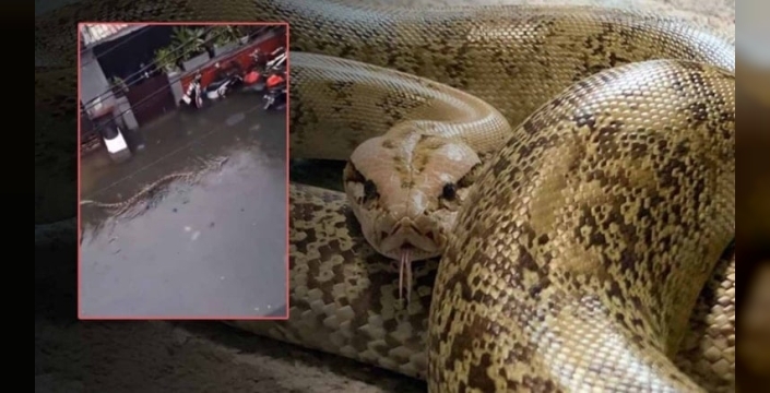 Bali, şiddetli yağışlar nedeniyle sular altında kalırken, sokaklarda 5 metreye varan dev pitonlar yüzmeye başladı. Zehirli olmasalar da tehlike arz eden yılanlar, halkı ve turistleri tedirgin ediyor.