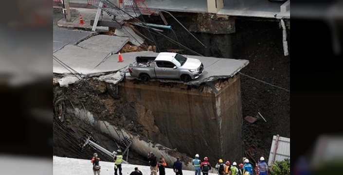 Tayland'ın başkenti Bangkok'ta, Dusit bölgesinde yer altı inşaatı devam eden bir yolda yerel saatle 07.00'de büyük bir çökme meydana geldi. Toprak kaymaları sonucu oluşan çukur, yaklaşık 30 metre genişliğinde ve 50 metre derinliğindeydi. Bir araç çukura düştü.