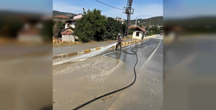 Bayırköy'de yol yıkama çalışmaları