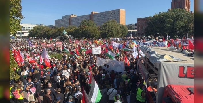 Almanya'nın başkenti Berlin, 'Tüm Gözler Gazze’de' temasıyla düzenlenen ve on binlerce kişinin katıldığı büyük bir protestoya ev sahipliği yaptı. İsrail'in Gazze Şeridi'nde sürdürdüğü eylemlerin durdurulması talebiyle toplanan kalabalık, Filistin'e destek gösterdi.