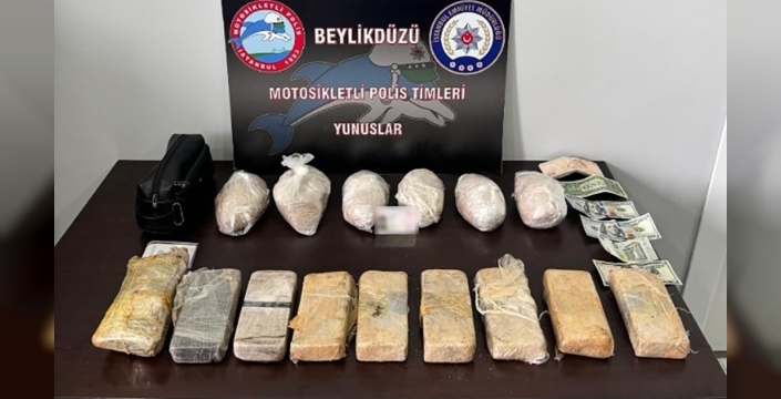 Beylikdüzü'nde yapılan asayiş uygulamasında, motosikletten 8 kilo eroin ve sahte kimlik ile yakalanan A.G. gözaltına alındı.