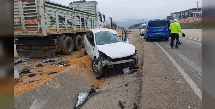 Bilecik'te direksiyon hakimiyetini kaybeden otomobil park halindeki tıra çarptı