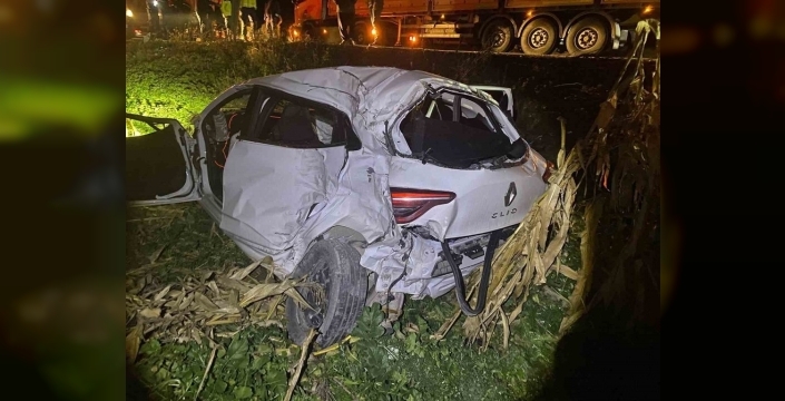 Bilecik'te gece vakti otomobil tırlara çarptı: 2 kişi yaralandı