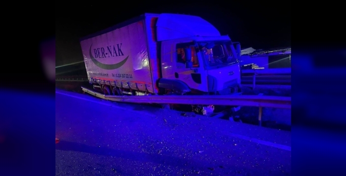 Bilecik-Bozüyük-İnegöl karayolu Çaydere Kavşağı yakınlarında yaşanan olayda, 16 BR 494 plakalı kamyonun sürücüsü Hakan K., henüz belirlenemeyen bir nedenle aracının kontrolünü kaybetti. Kontrolden çıkan kamyon, yolun ortasındaki refüjde bulunan bariyerlere çararak durabildi.