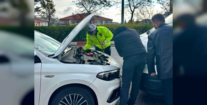 Bilecik'te polis ekipleri: Arızalı araca akü takviyesi yaptılar