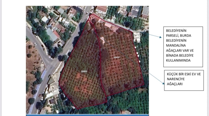 Yanındaki 257 ada 80 numaralı mandalina bahçesi ise belediyeye ait.
