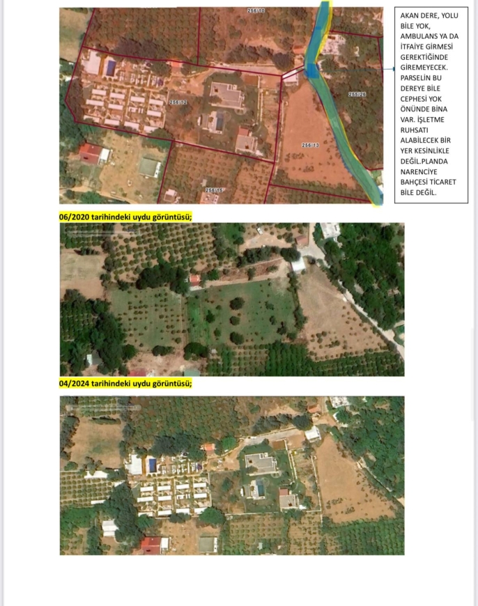 Oysa 2021 uydu görüntülerinde alan açıkça narenciye bahçesi.