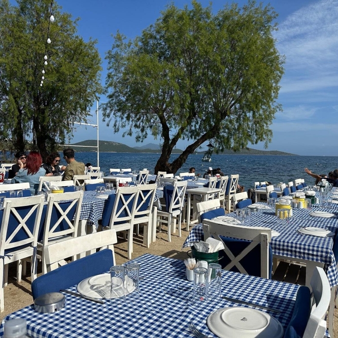 Deniz kenarında, ahşap masaların üzerinde mavi-beyaz örtüler, tepenizde ipe dizili ampullerle hoş bir kebapçı. Mezeleri ve kebapları lezzetli. Patates kızartması ev yapımı. Hamburger, makarna, sakatat gibi seçenekler de var. Sunumları da çok hoş. Yaz-kış hizmet veriyor. @yuzgecbodrum