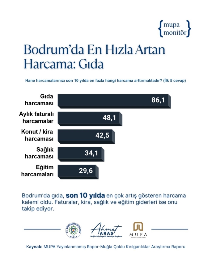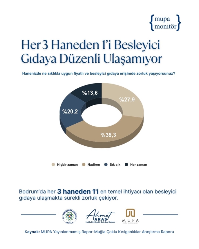 Turizm gelirleriyle öne çıkan Bodrum'da, artan maliyetler ve ekonomik dalgalanmaların hane halkları üzerindeki etkisi belirginleşti. MUPA'nın verileri, ilçe halkının önemli bir kısmının temel ihtiyaçlarını karşılamakta güçlük çektiğini ve bu durumun beslenme alışkanlıklarını olumsuz etkilediğini gösteriyor. Kaliteli ve besleyici gıdaya ulaşımın kısıtlanması, uzun vadede halk sağlığı açısından da endişe verici bir tablo çiziyor.