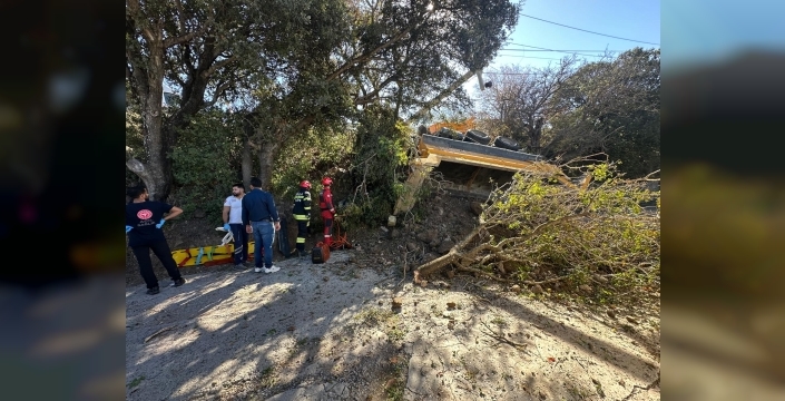 Bodrum’un Bağla Mahallesi yolunda meydana gelen trafik kazasında bir hafriyat kamyonu kontrolden çıkarak devrildi. Kazada sürücü araç içinde sıkıştı. Olay, sabah saatlerinde Bağla istikametinde meydana geldi. Henüz belirlenemeyen bir nedenle direksiyon hâkimiyetini kaybeden sürücünün kullandığı hafriyat kamyonu yol kenarına devrildi.