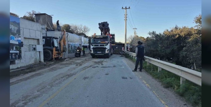 Bodrum'da hafriyat kamyonu devrildi, yol trafiğe kapandı: 1 yaralı